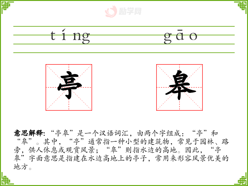 1.亭皋的拼音是什么?亭皋怎么读?