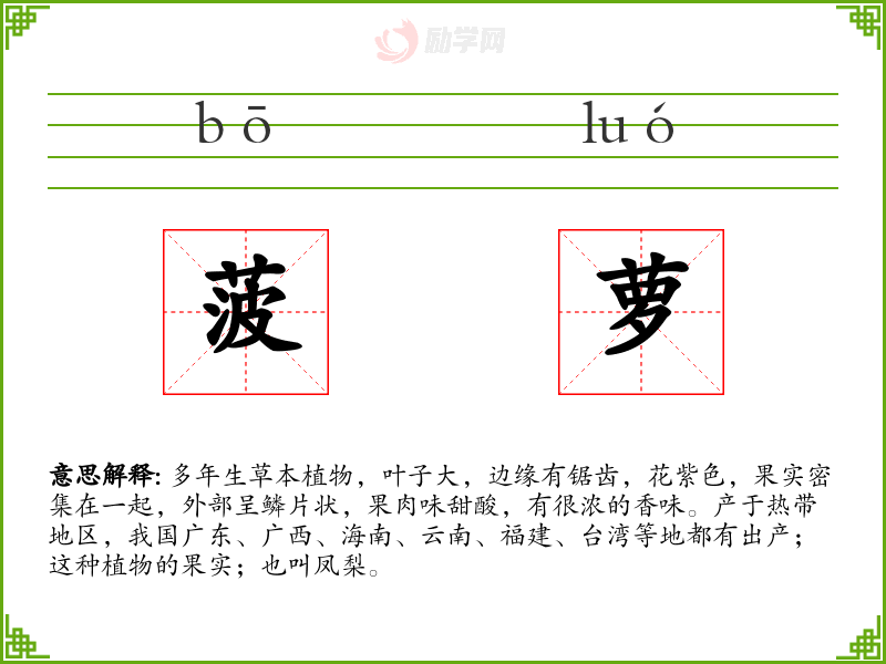 1.菠萝的拼音是什么?菠萝怎么读?