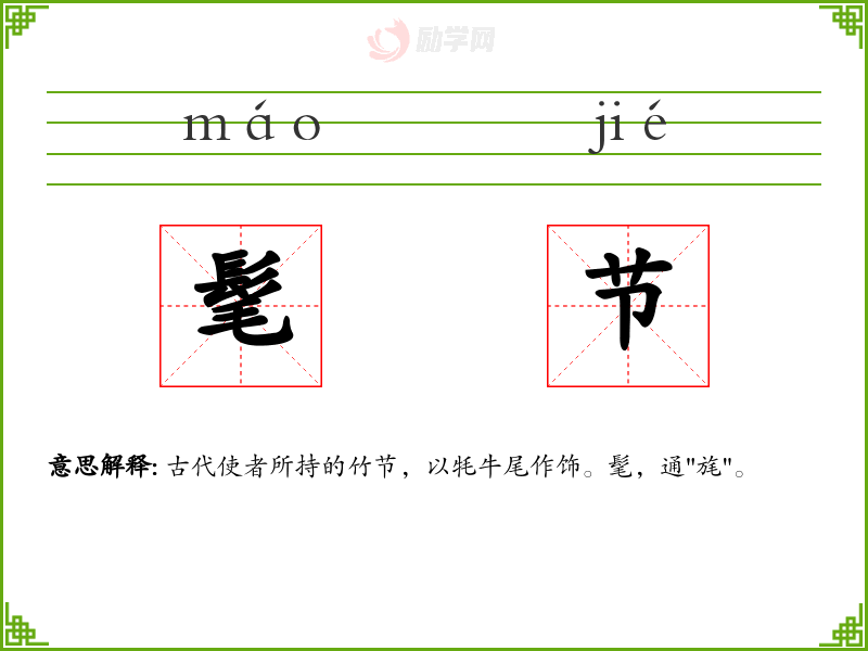 髦节的意思是:古代使者所持的竹节,以牦牛尾作饰。髦,通"旄"。
