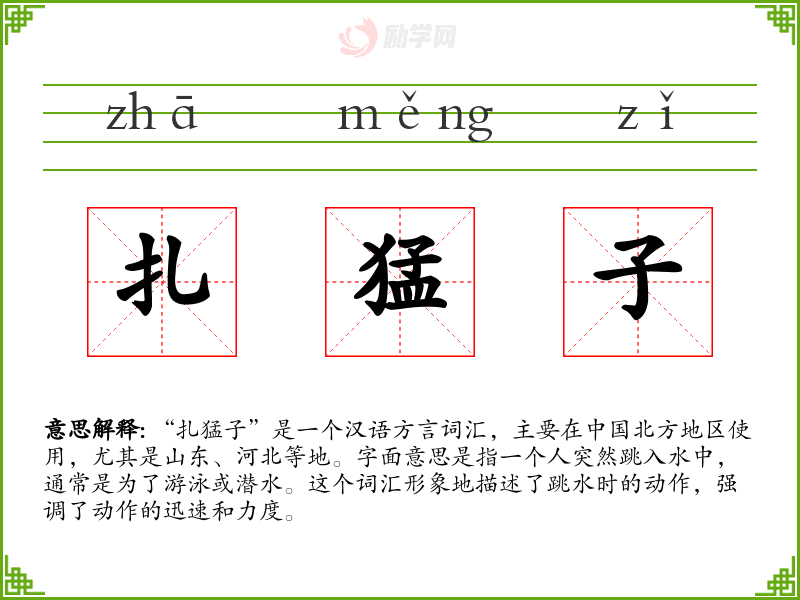 1.扎猛子的拼音是什么?扎猛子怎么读?