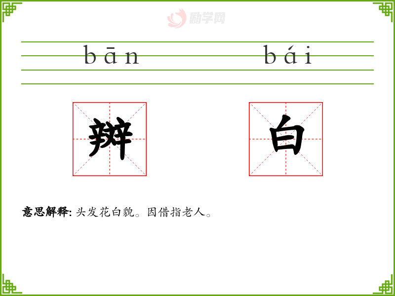 辬白的意思是:头发花白貌。因借指老人。
