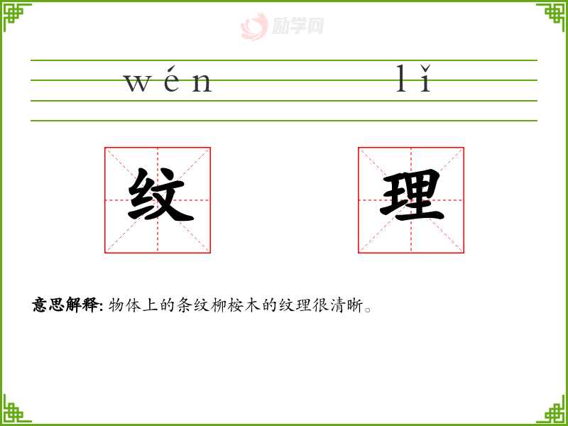 纹理的意思是:物体上的条纹柳桉木的纹理很清晰。