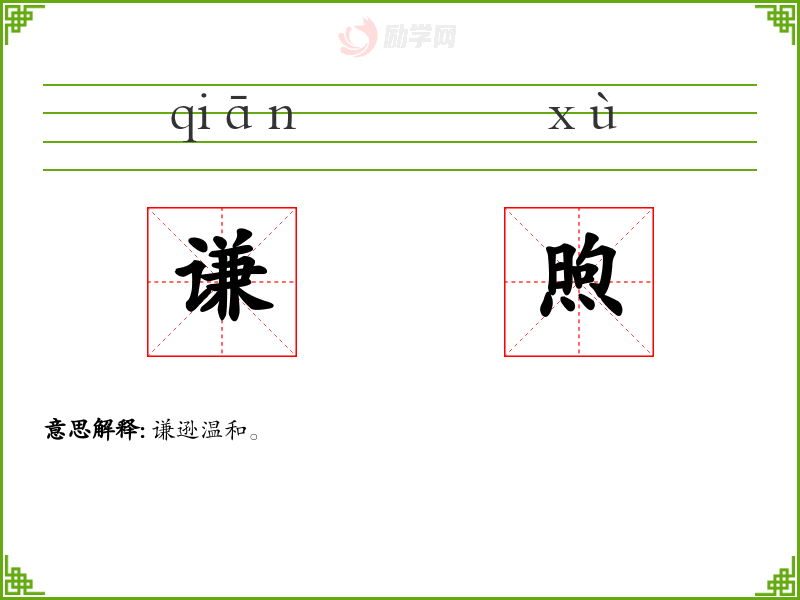 谦煦的意思是:谦逊温和。