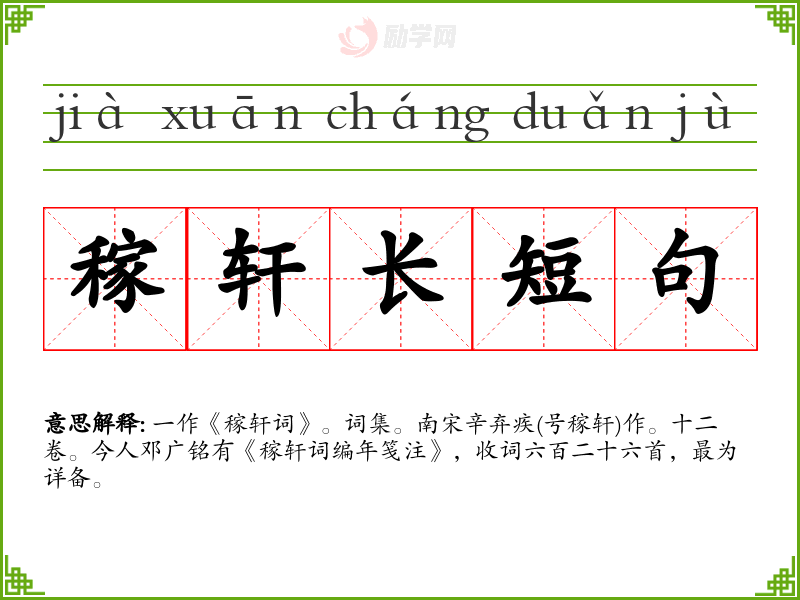 1.稼轩长短句的拼音是什么?稼轩长短句怎么读?