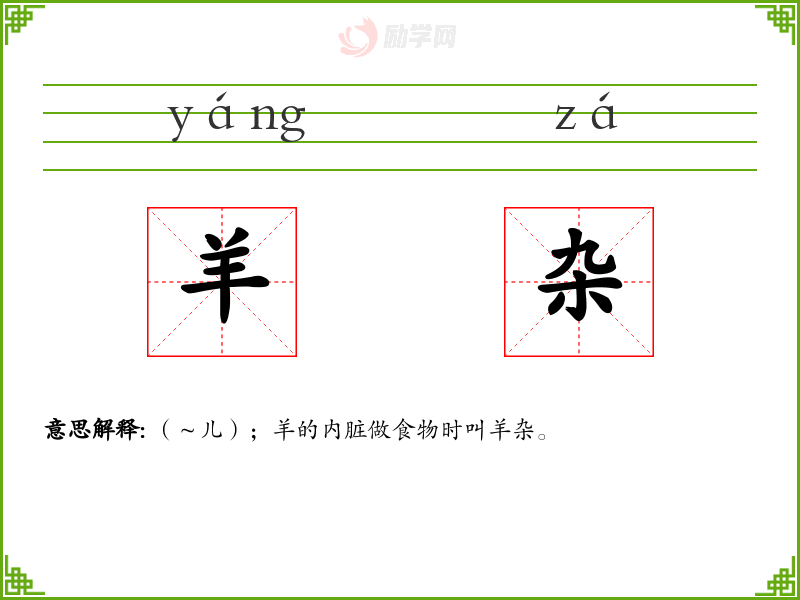 羊杂的意思是:(~儿);羊的内脏做食物时叫羊杂。