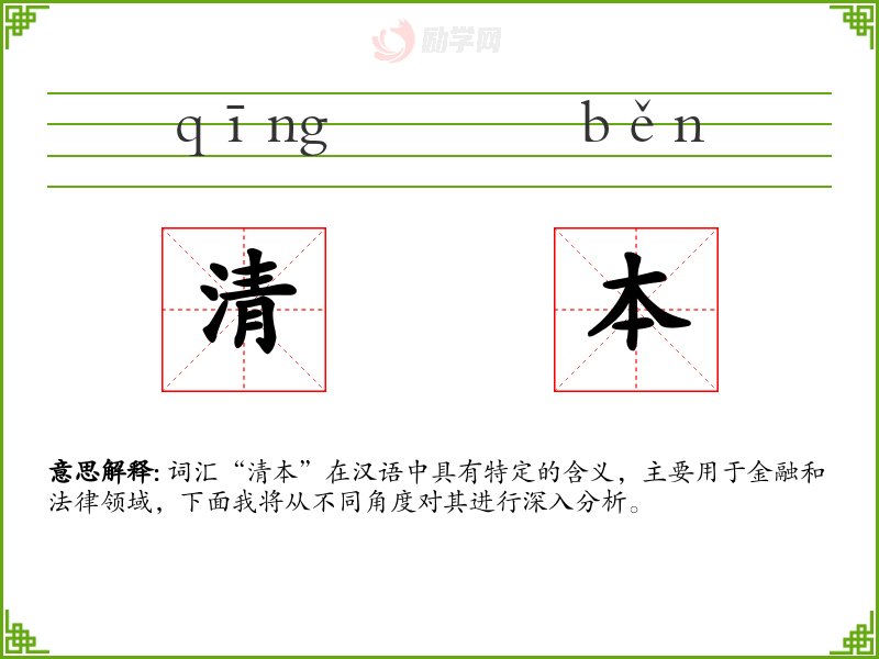词汇“清本”在汉语中具有特定的含义,主要用于金融和法律领域,下面我将从不同角度对其进行深入分析。