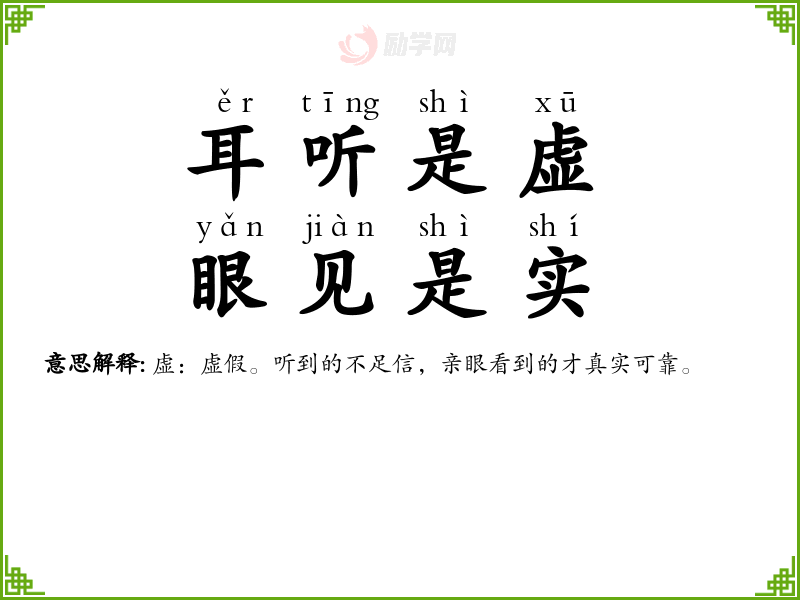 1.耳听是虚,眼见是实的拼音是什么?耳听是虚,眼见是实怎么读?