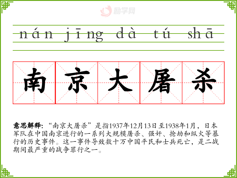 1.南京大屠杀的拼音是什么?南京大屠杀怎么读?