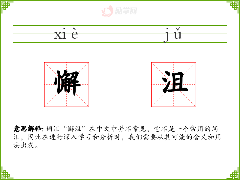 词汇“懈沮”在中文中并不常见,它不是一个常用的词汇,因此在进行深入学习和分析时,我们需要从其可能的含义和用法出发。