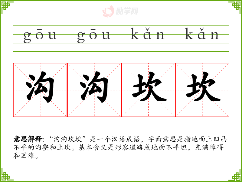 1.沟沟坎坎的拼音是什么?沟沟坎坎怎么读?