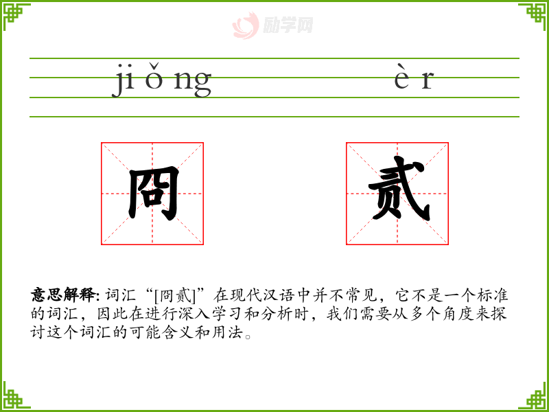 词汇“[冏贰]”在现代汉语中并不常见,它不是一个标准的词汇,因此在进行深入学习和分析时,我们需要从多个角度来探讨这个词汇的可能含义和用法。