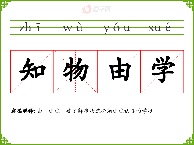 知物由学的意思是:由:通过。要了解事物就必须通过认真的学习。
