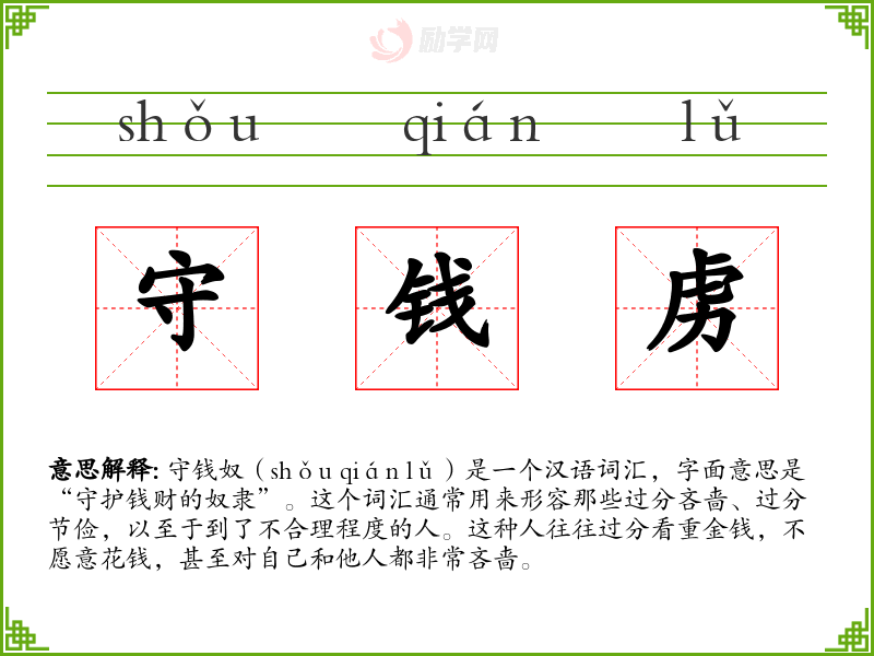 1.守钱虏的拼音是什么?守钱虏怎么读?