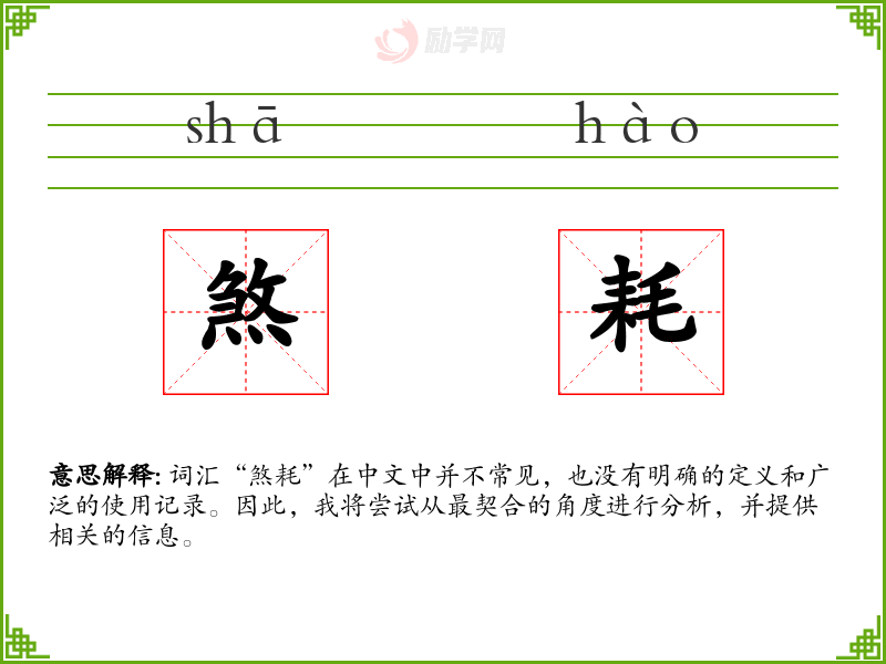 由于“煞耗”不是一个常用词汇,它在语言学习和表达中的重要性有限。总结来说,“煞耗”是一个不常见的词汇,其定义和用法都非常有限,因此在语言学习和表达中的应用价值不高。