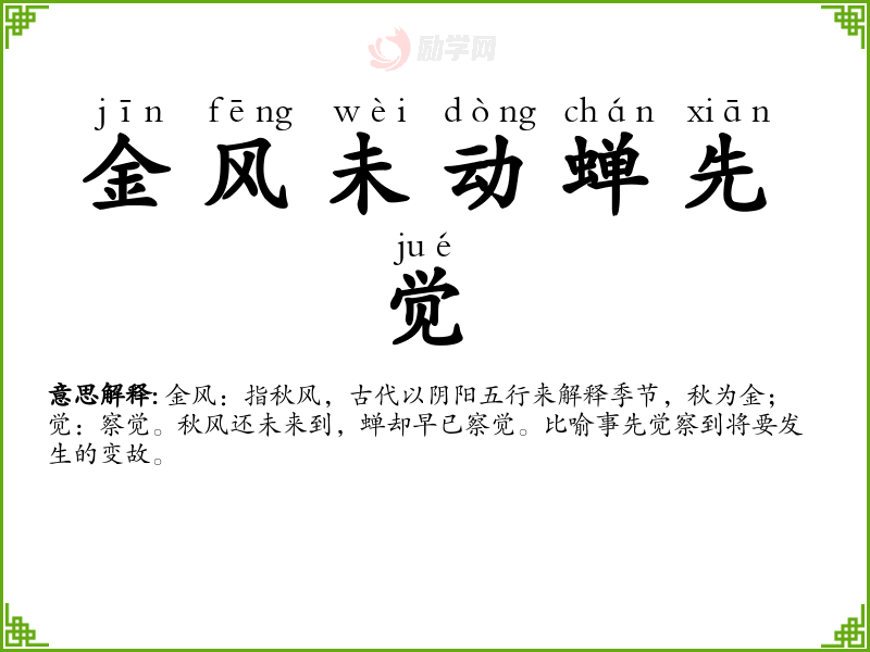 1.金风未动蝉先觉的拼音是什么?金风未动蝉先觉怎么读?