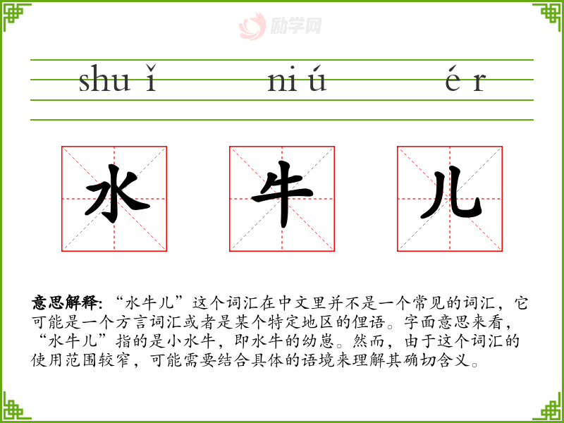 1.水牛儿的拼音是什么?水牛儿怎么读?