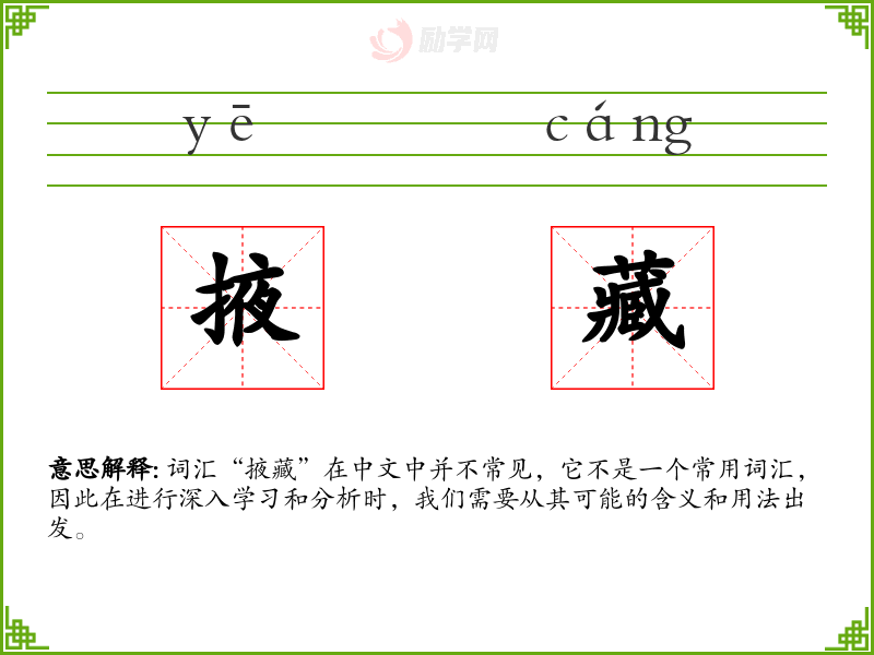 词汇“掖藏”在中文中并不常见,它不是一个常用词汇,因此在进行深入学习和分析时,我们需要从其可能的含义和用法出发。
