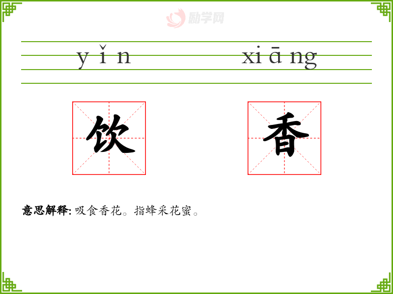 饮香的意思是:吸食香花。指蜂采花蜜。