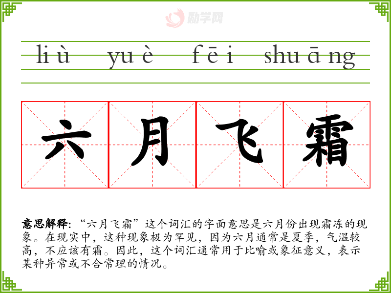 1.六月飞霜的拼音是什么?六月飞霜怎么读?