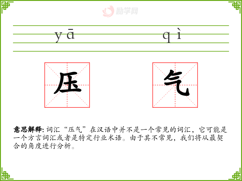 词汇“压气”在汉语中并不是一个常见的词汇,它可能是一个方言词汇或者是特定行业术语。由于其不常见,我们将从最契合的角度进行分析。