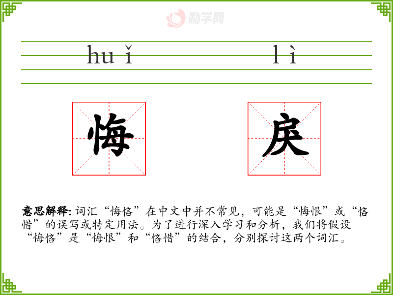词汇“悔悋”在中文中并不常见,可能是“悔恨”或“悋惜”的误写或特定用法。为了进行深入学习和分析,我们将假设“悔悋”是“悔恨”和“悋惜”的结合,分别探讨这两个词汇。