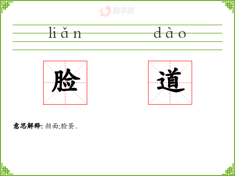(形声。从肉,佥(qiān)声。古代表示人的整个面部用“面”。“脸”字在魏晋时期才出现,只表示两颊的上部,到了唐宋时期,口语中才用“脸”表示整个面部。本义:两颊的上部)。