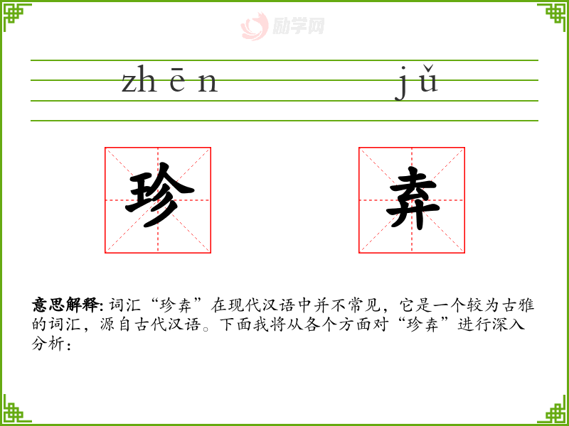 词汇“珍弆”在现代汉语中并不常见,它是一个较为古雅的词汇,源自古代汉语。下面我将从各个方面对“珍弆”进行深入分析: