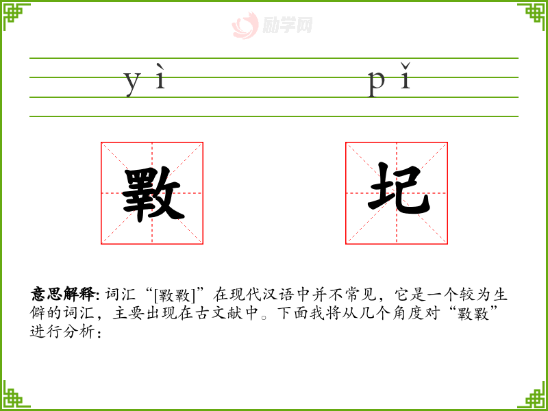词汇“[斁斁]”在现代汉语中并不常见,它是一个较为生僻的词汇,主要出现在古文献中。下面我将从几个角度对“斁斁”进行分析: