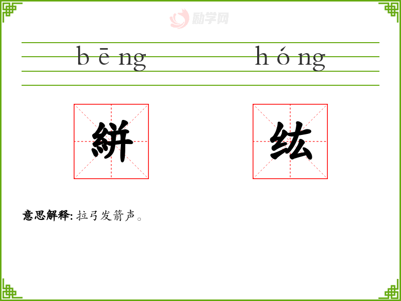 絣纮的意思是:拉弓发箭声。