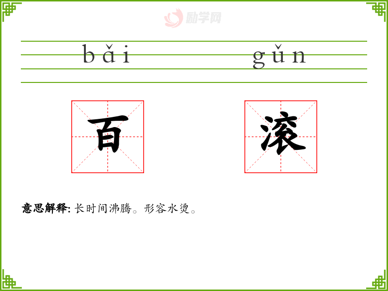 百滚的意思是:长时间沸腾。形容水烫。