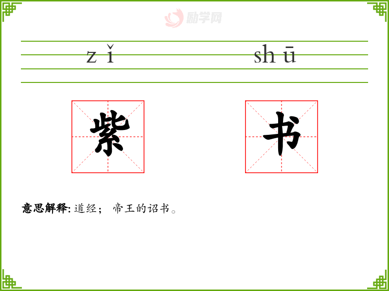 紫书的意思是:道经; 帝王的诏书。