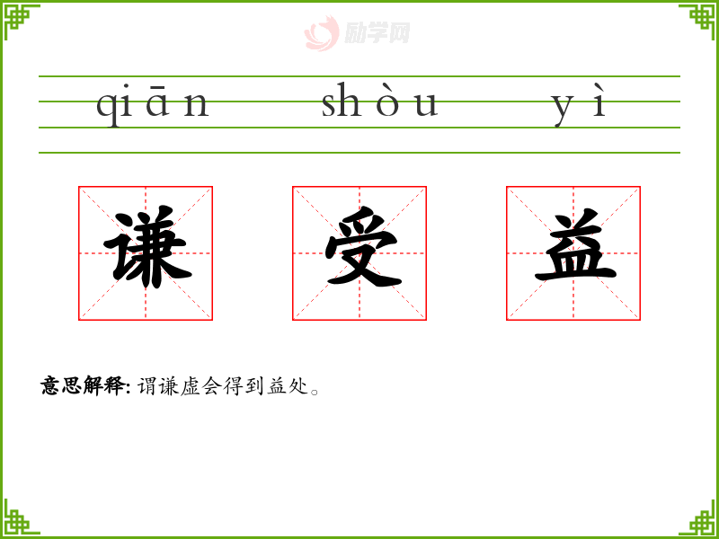 《说文》”王筠曰:“手部授,人部付,皆曰“予也。”今以付说受,则是受授同字矣。”-受,相付也。 《周礼·天官·司书》-受其币。 《仪礼·特牲馈食礼》-主妇拜受爵。 《周礼·司干》。注:“取藏之。”-则受之。 《仪礼·丧服》。注:“犹承也。”-受以小功衰。 《国语·楚语》。注:“承也。”-颛顼受之。 《管子·海南》-釜十五,吾受,而宫出之以百。 《后汉书·列女传》-志士不饮盗泉之水,廉者不受嗟来之食。 《史记·魏公子列传》-臣修身洁行数十年,终不以监门困故而受公子财。