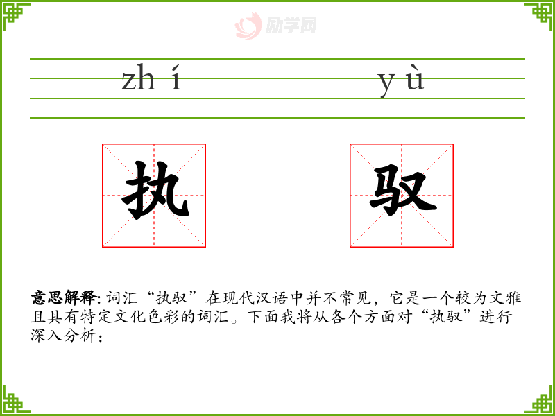 词汇“执驭”在现代汉语中并不常见,它是一个较为文雅且具有特定文化色彩的词汇。下面我将从各个方面对“执驭”进行深入分析: