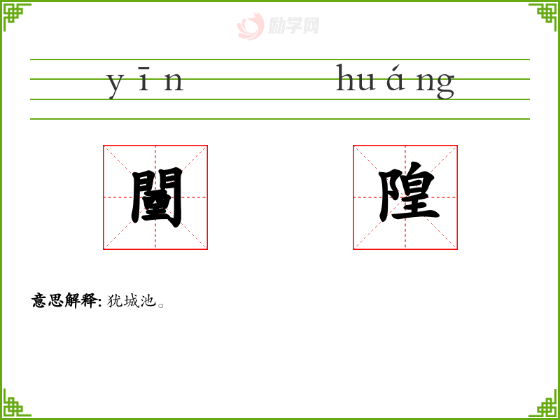 《说文》-隍,城池也,有水曰池,无水曰隍。 《易·泰》-城复干隍。