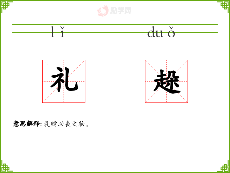 礼趓的意思是:礼赠助丧之物。