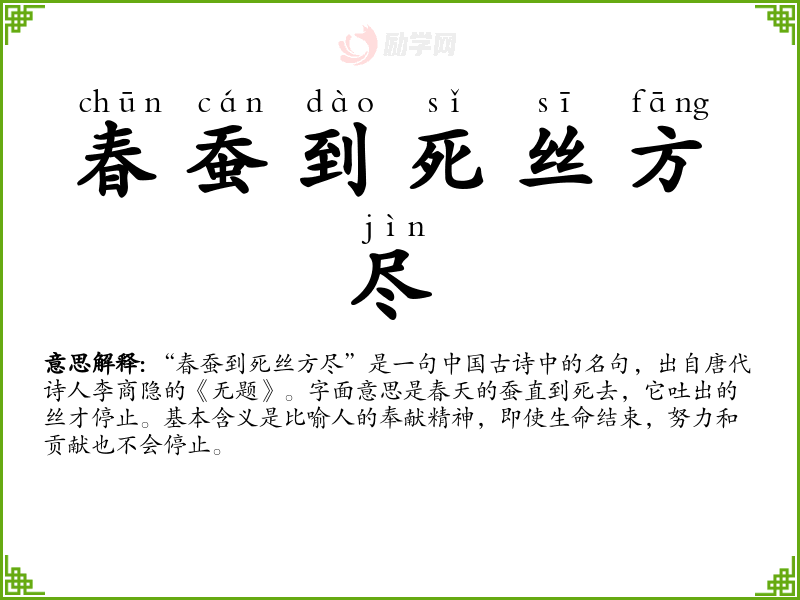 1.春蚕到死丝方尽的拼音是什么?春蚕到死丝方尽怎么读?