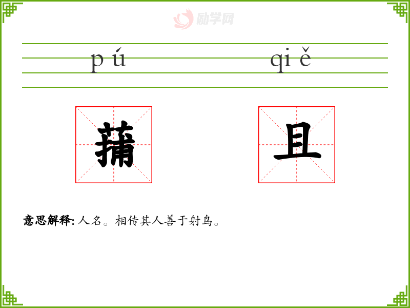 蒱且的意思是:人名。相传其人善于射鸟。