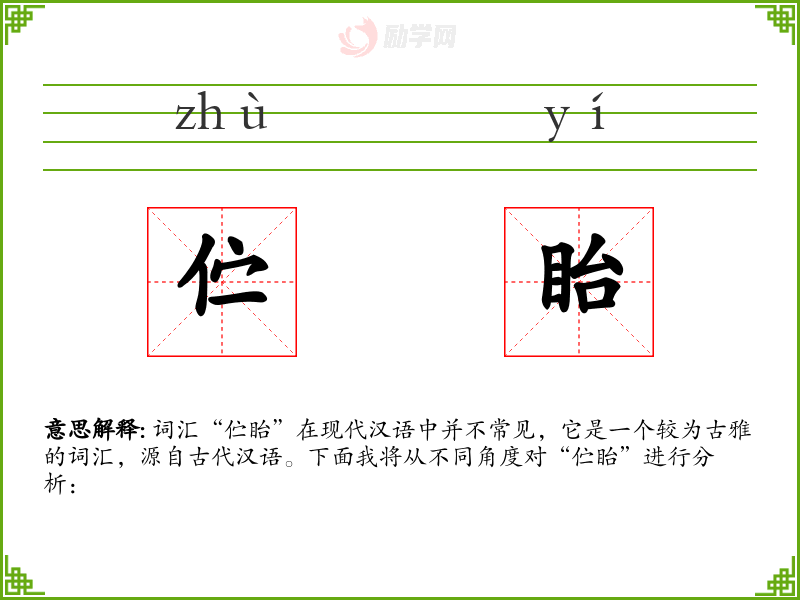 词汇“伫眙”在现代汉语中并不常见,它是一个较为古雅的词汇,源自古代汉语。下面我将从不同角度对“伫眙”进行分析: