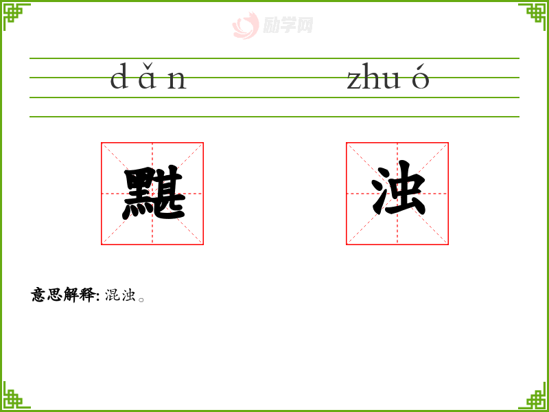 浊[ zhuó ] 1. (形声。从水,蜀声。本义:浊水) 同本义。 【引证】 《说文》。今曰北阳水。-浊水出齐郡厉伪山,东北入钜定。 2. 源出山东省益都县西南,北流注入小清河。 [更多解释]
