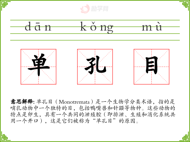 1.单孔目的拼音是什么?单孔目怎么读?