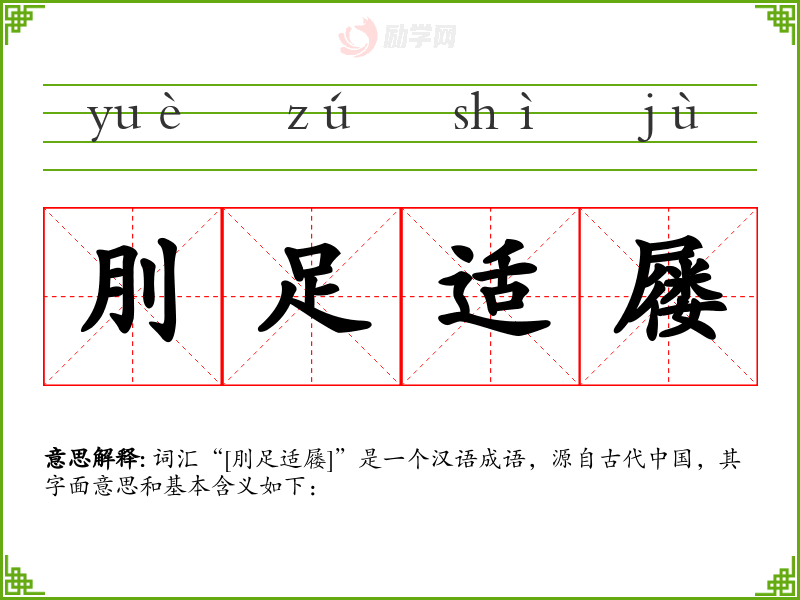 词汇“[刖足适屦]”是一个汉语成语,源自古代**,其字面意思和基本含义如下:
