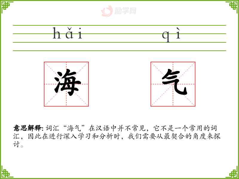 词汇“海气”在汉语中并不常见,它不是一个常用的词汇,因此在进行深入学*和分析时,我们需要从最契合的角度来探讨。