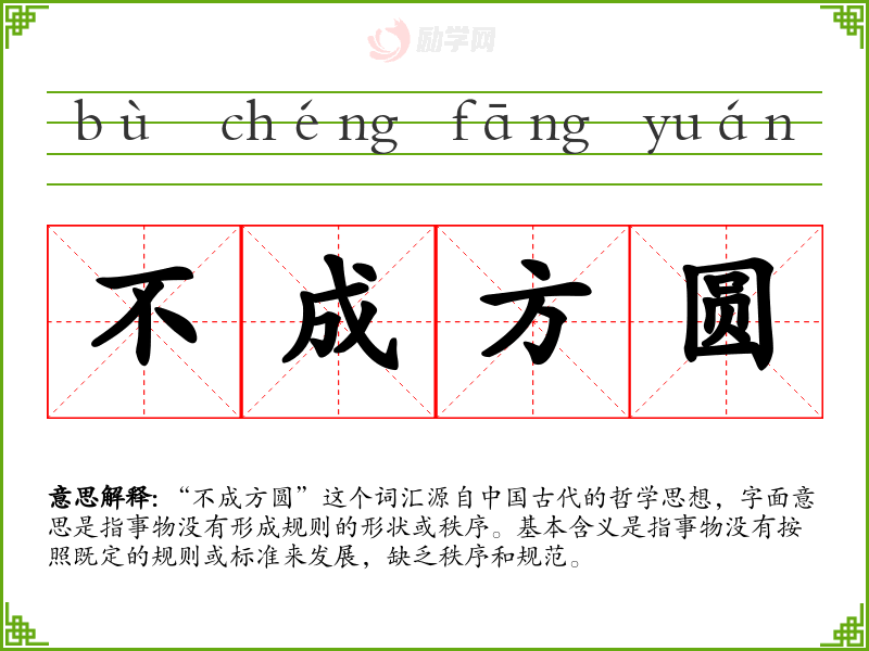 不以规矩,不成方bù yǐ guī jǔ,bù néng chéng fāng yuán