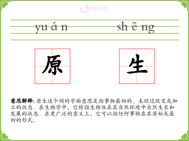 原生的拼音是:yuán shēng