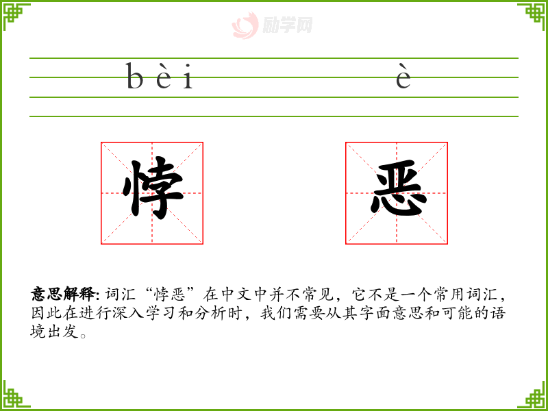 词汇“悖恶”在中文中并不常见,它不是一个常用词汇,因此在进行深入学*和分析时,我们需要从其字面意思和可能的语境出发。