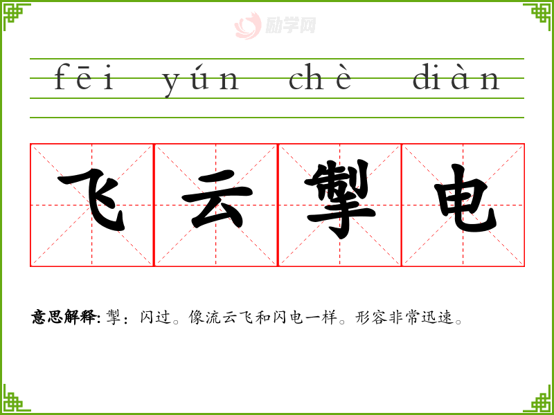 1.飞云掣电的拼音是什么?飞云掣电怎么读?
