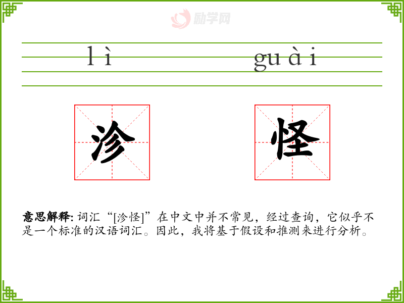 由于“沴怪”不是一个标准词汇,其词源和演变无从考证。
