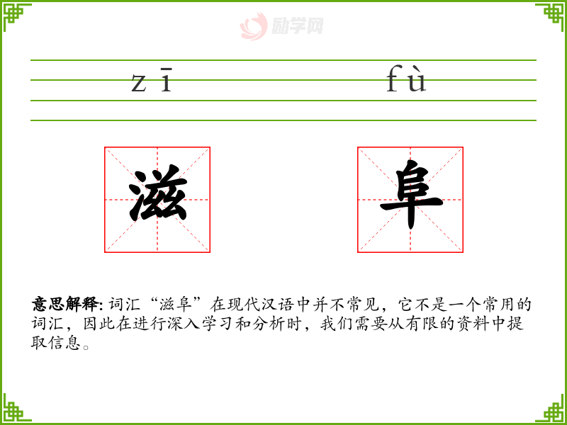 词汇“滋阜”在现代汉语中并不常见,它不是一个常用的词汇,因此在进行深入学习和分析时,我们需要从有限的资料中提取信息。