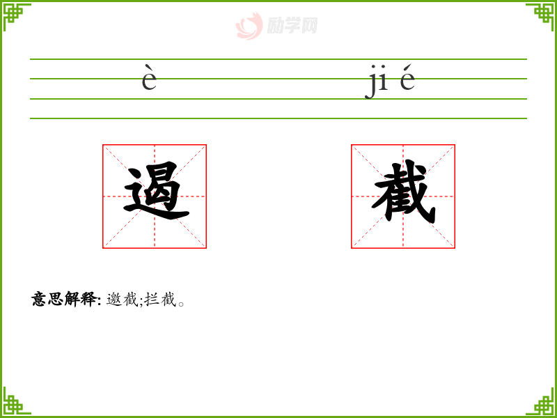遏截的意思是:邀截;拦截。