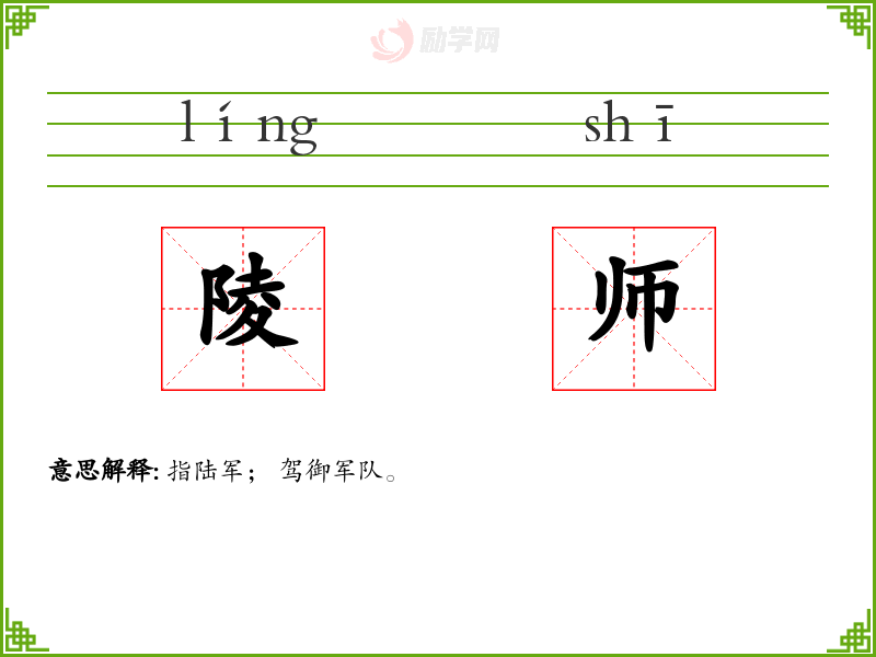 陵师的意思是:指陆军; 驾御军队。